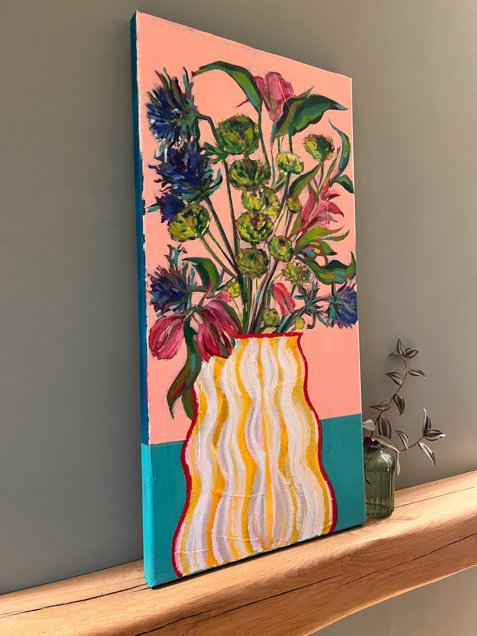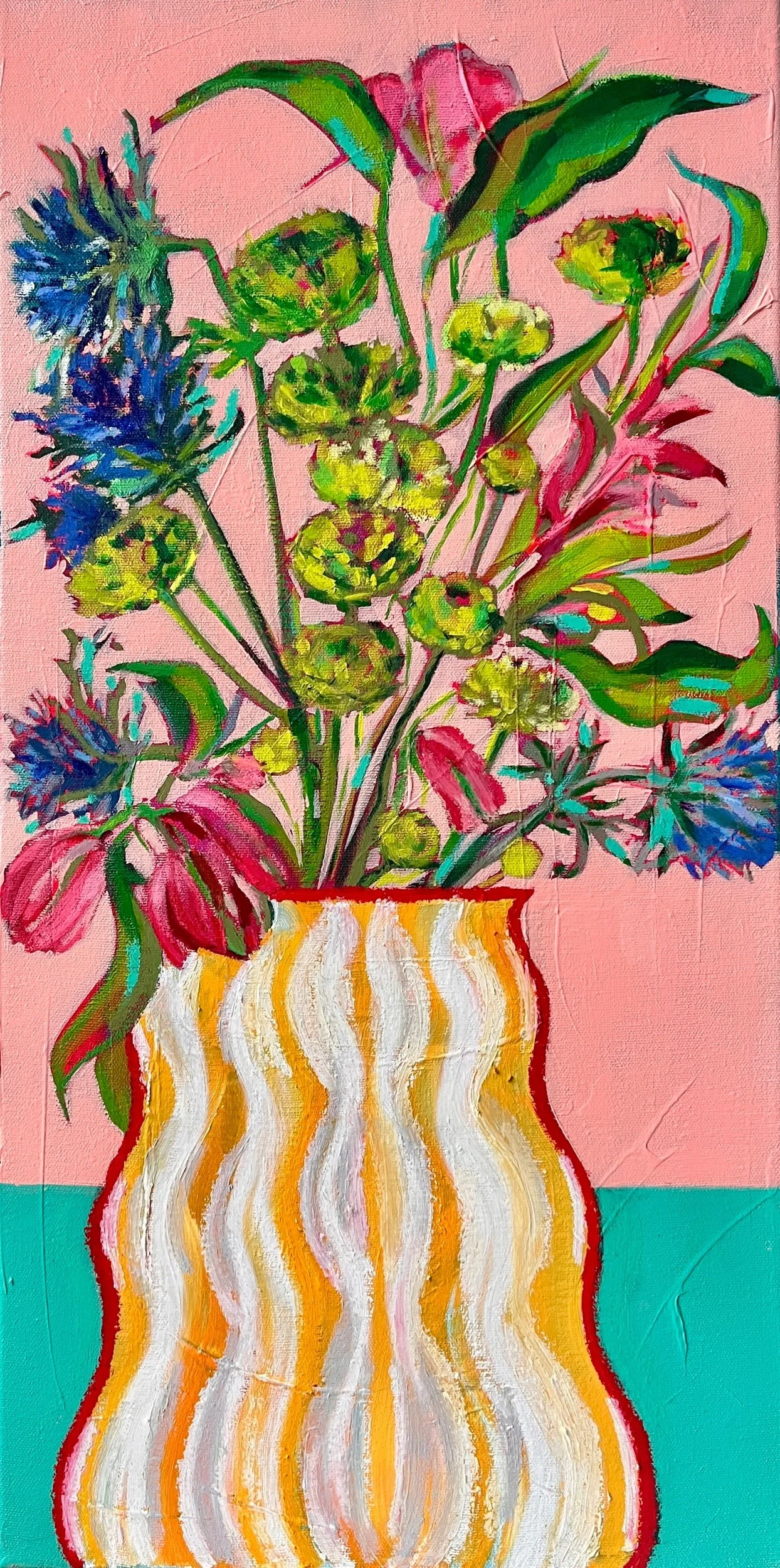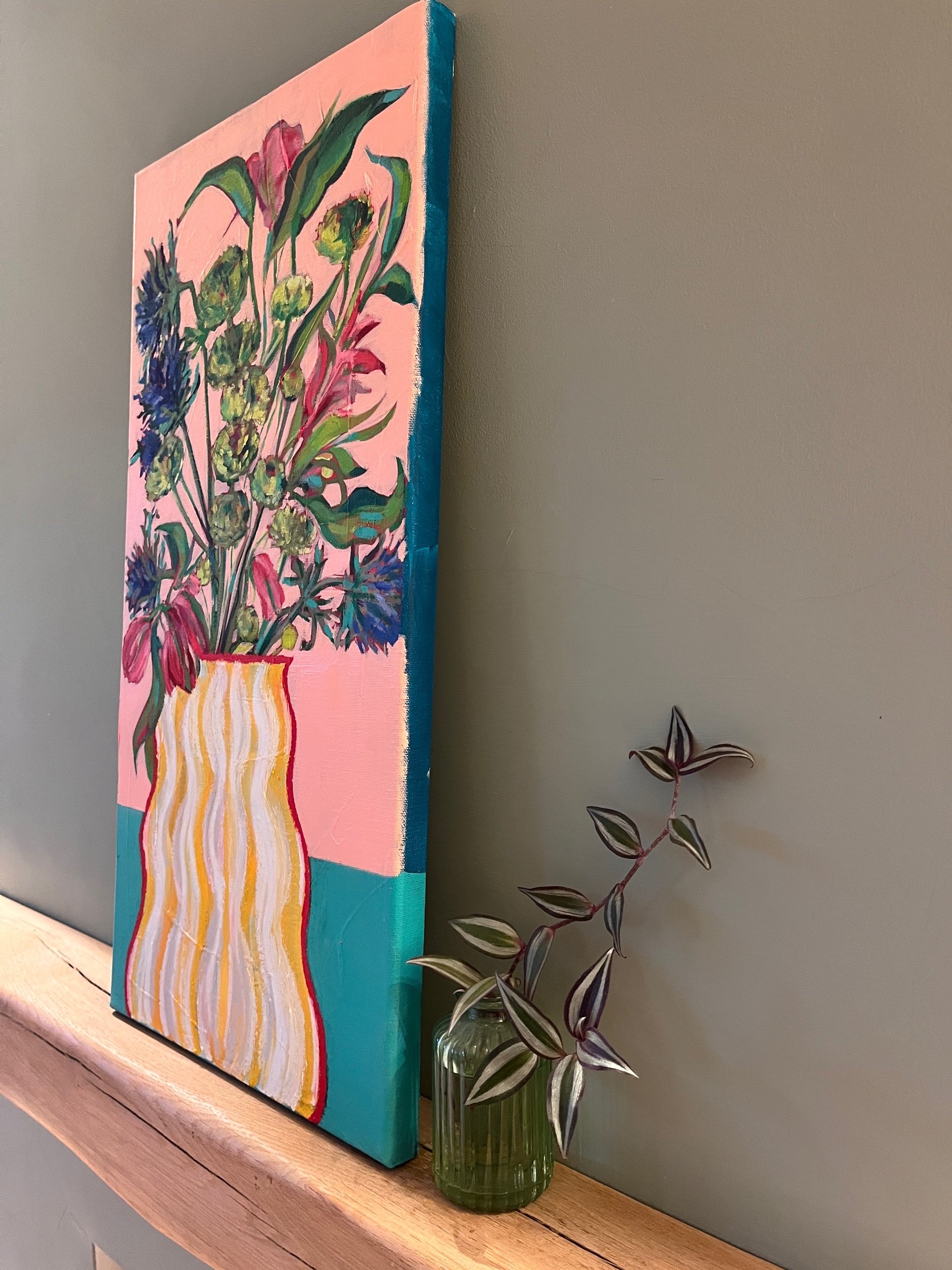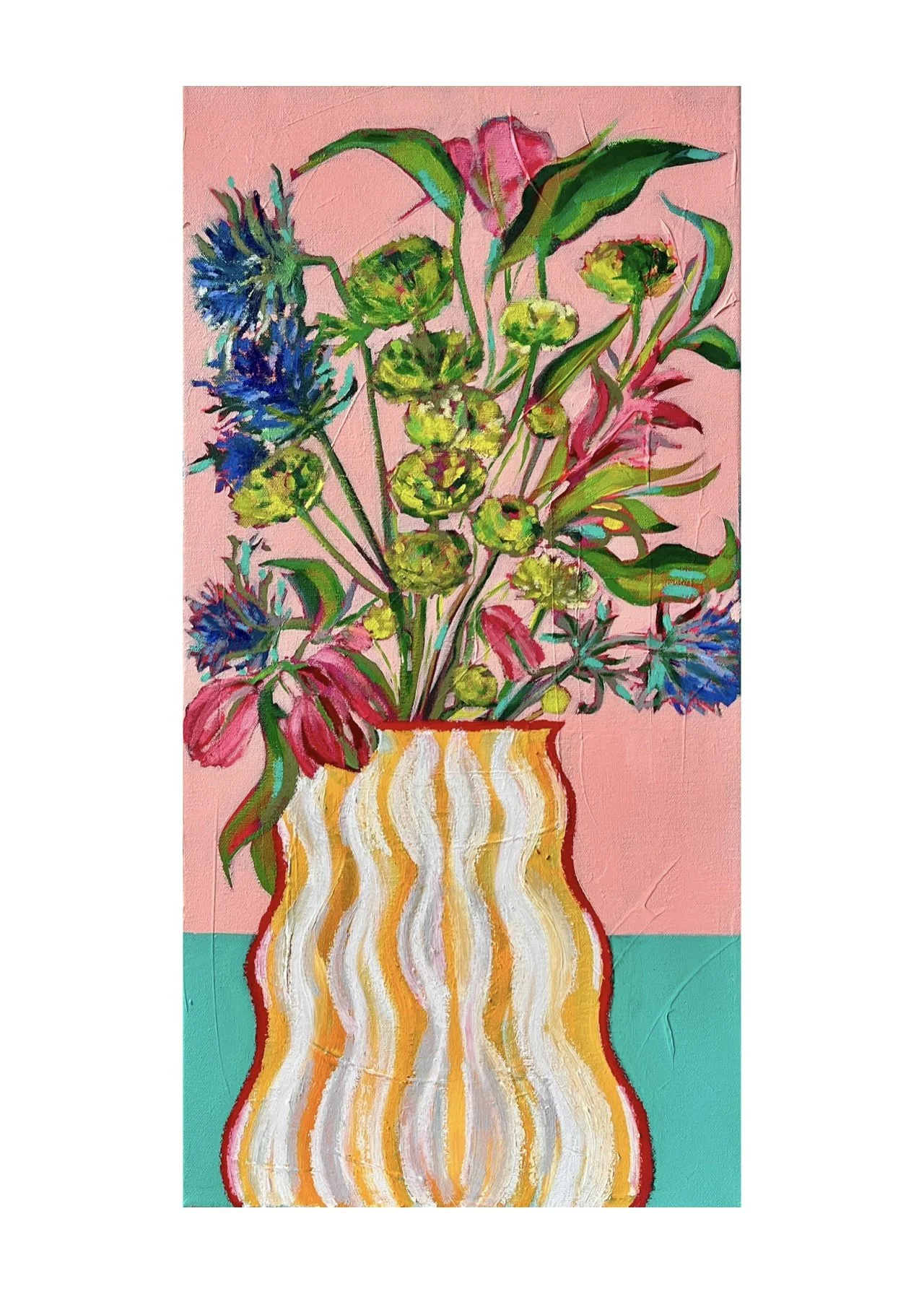 Oil pastel and acrylic on 30x60cm stretched canvas.